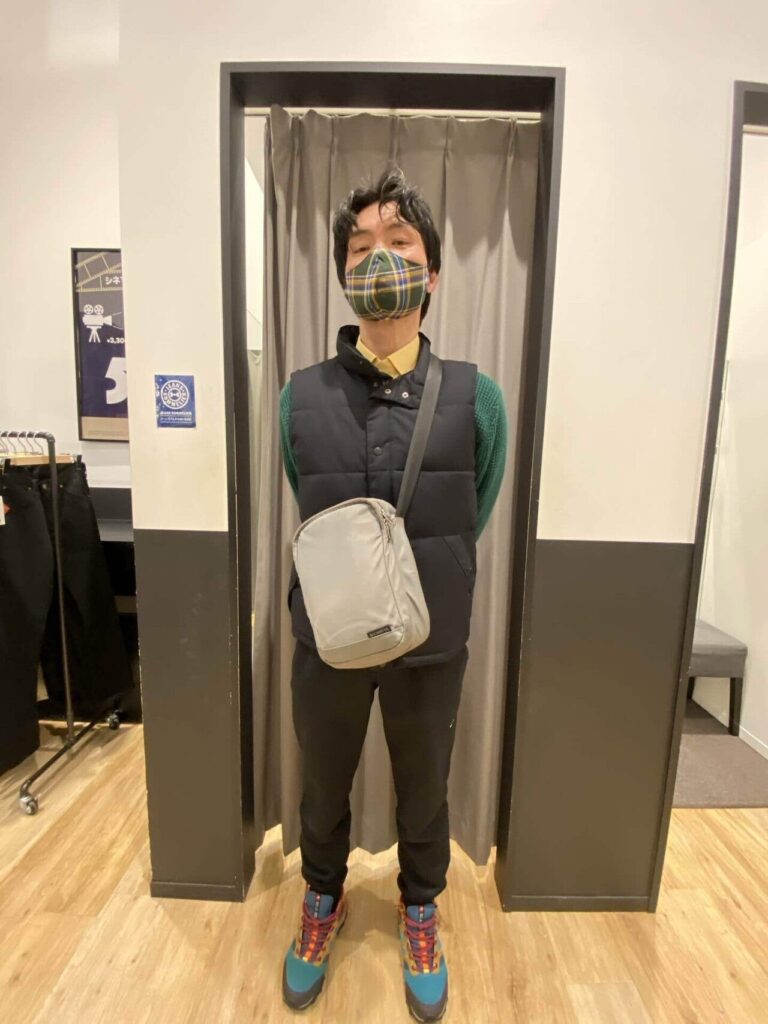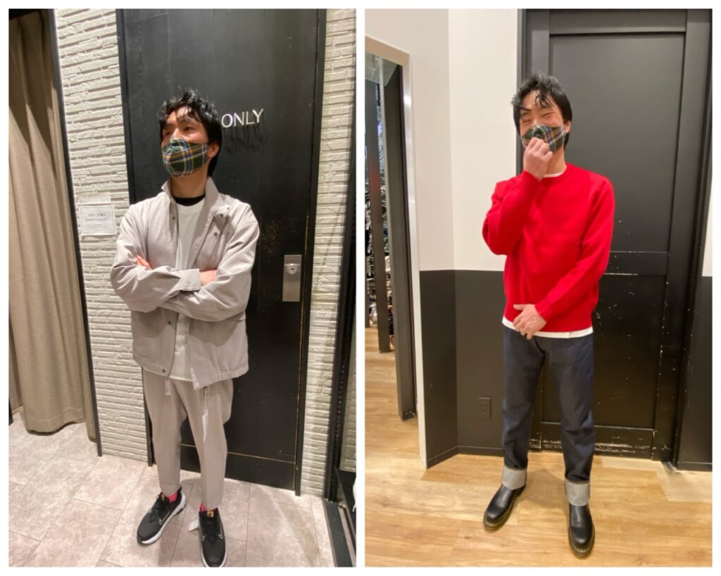 お仕事では黒色ジャージーを着ることがほとんどで、普段は明るめのお洋服を取り入れているそう。当日お召しされていたお洋服のグリーンカーディガンもすごく似合われていました。ただ、ちょっと多色使いが気になったのでそれも同行ショッピングでアドバイスしながら改善。