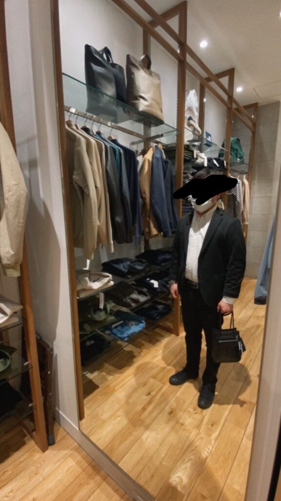 どこのショップも巾着のバッグがメンズでも増えてきてますが、お客様のイメージとは違うのでレザーで形も角のあるもので探しました。