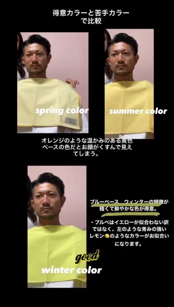 レモン🍋のような青味の強い黄色が今回ウィンタータイプさんにはお似合いになられます。