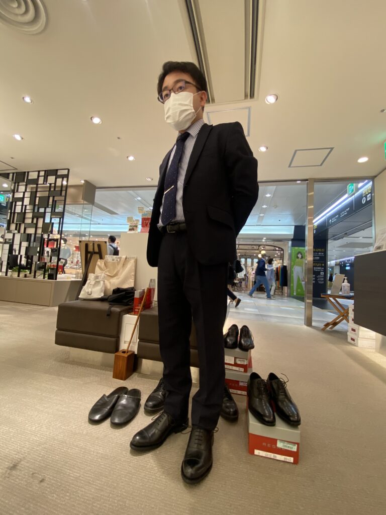 お仕事柄徒歩でも移動されることが多いようで、靴底が擦れやすく買い替えが必要に。今回はリーガルでリアルレザーのストレートチップを4足程履き比べ、中でもスタイルアップして見えるシューズを2足同じ物をご購入されました。